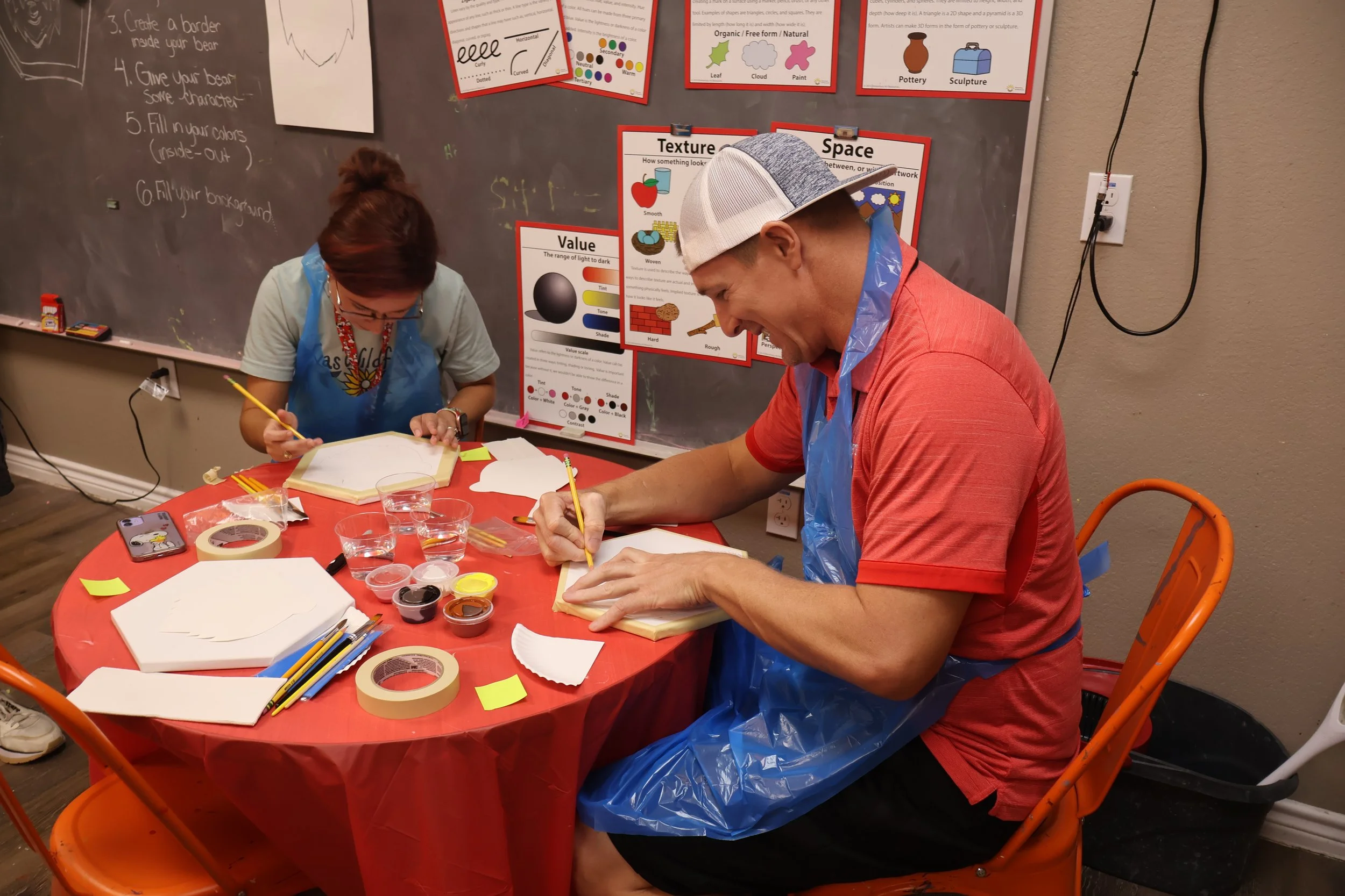 Guests follow a guided painting project and take home their own finished canvas.