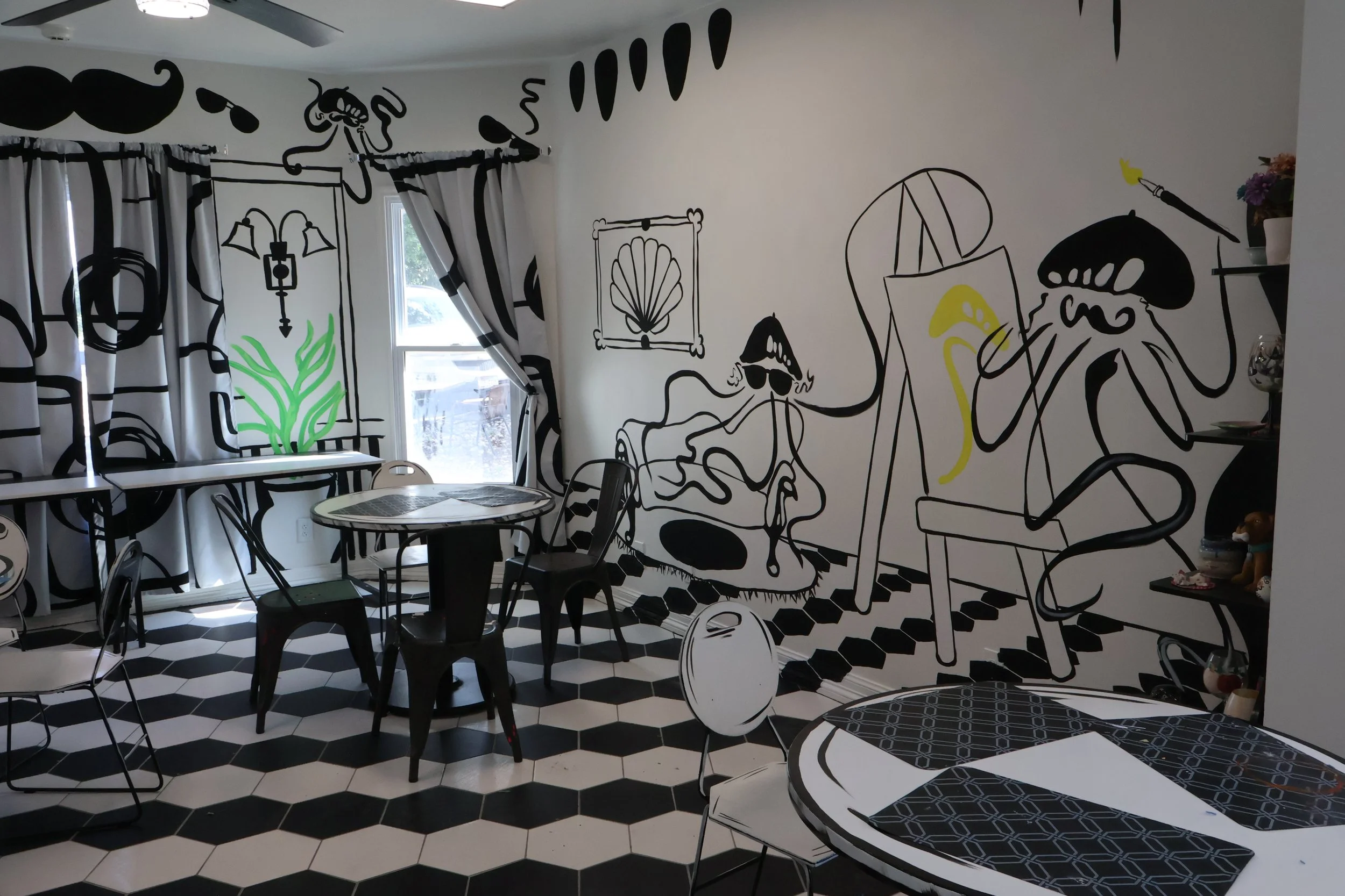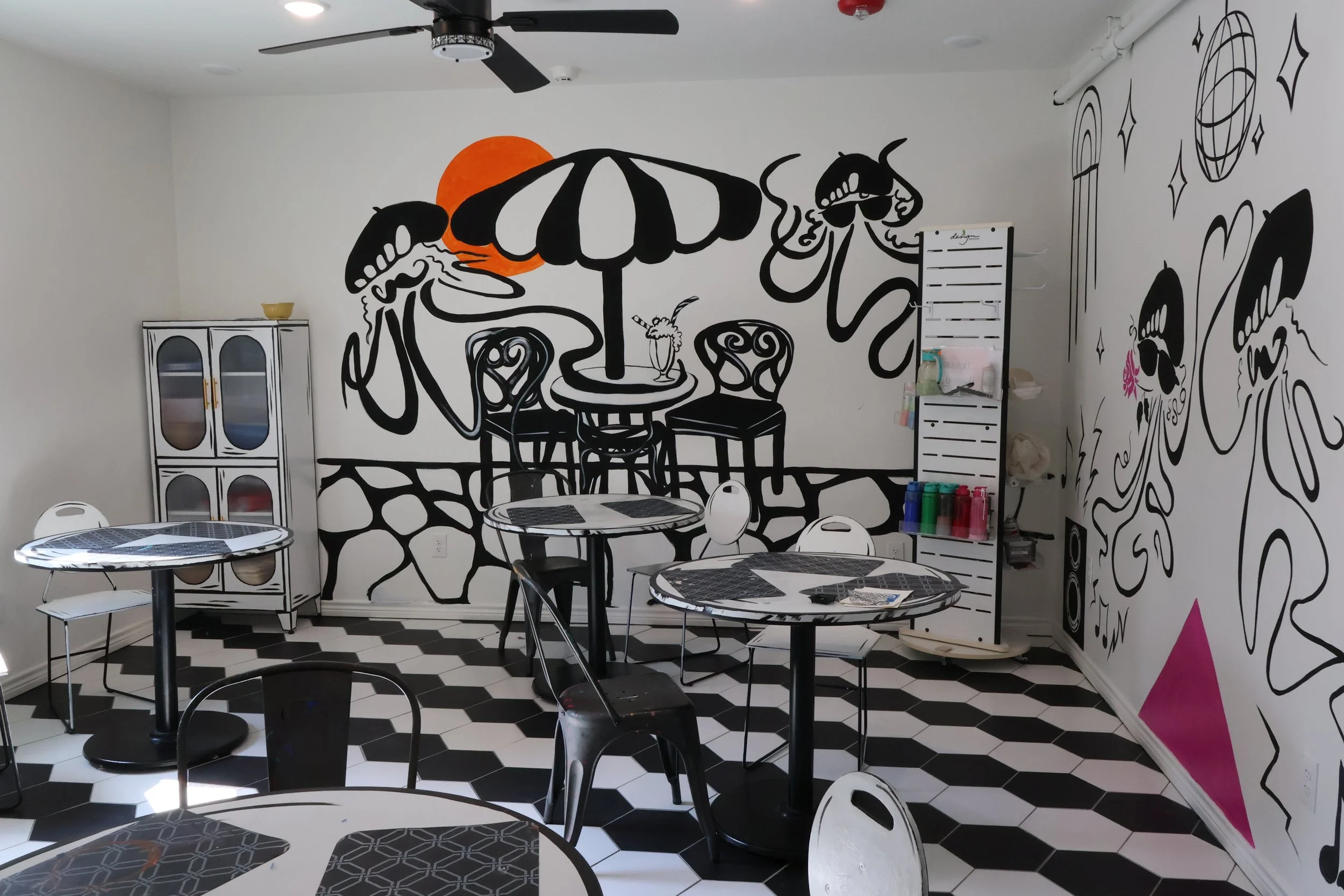 Welcome to the Art Café, your cozy and colorful escape — a one-of-a-kind 2D design that brings your imagination to life. From the moment you walk in, you'll feel like you’ve stepped into a hand-drawn world — playful, whimsical, and totally Instagram-worthy.